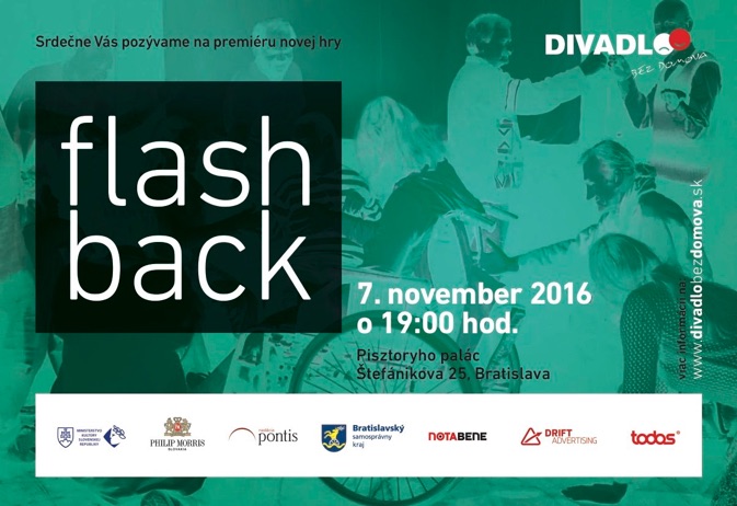 Divadelná hra Flešbek reflektuje náš umelecký proces počas desiatich rokov našej divadelnej existencie. Slávnostná premiéra bola v októbri 2016 v priestoroch nášho divadla.