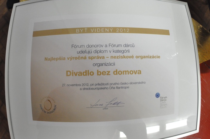 Divadlo bez domova získalo 20.júna 2011 Cenu Nadácie Erste za sociálnu integráciu vo výške 16.000 Eur .